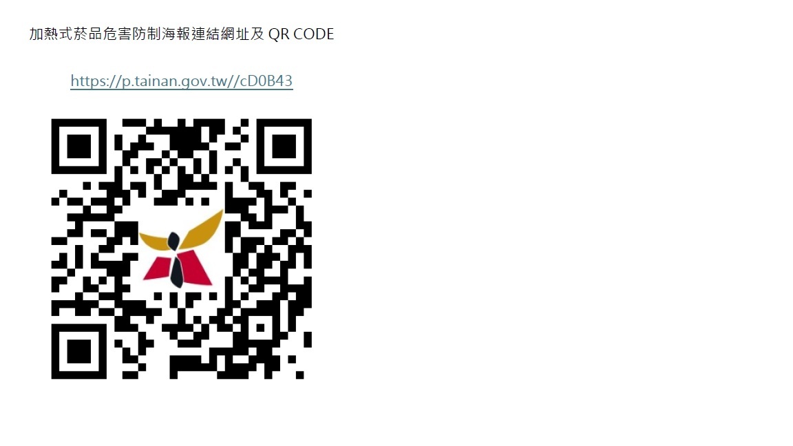 為維護青少年遠離菸品危害、強化對菸害防制識能,檢附國健署製作「加熱菸危害」海報連結網址。