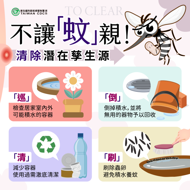 【登革熱防治宣導】懇請於寒假前加強環境清潔,並於寒假期間持續落實登革熱等蚊媒傳染病之防疫措施。